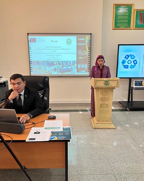 Taslamanyň ady: "Gaýtadan işlemek tapgyrly ykdysadyýet we durnukly ösüş boýunça innowasion okuw maksatnamalaryny we modullaryny işläp taýýarlamak" (CirculEC).